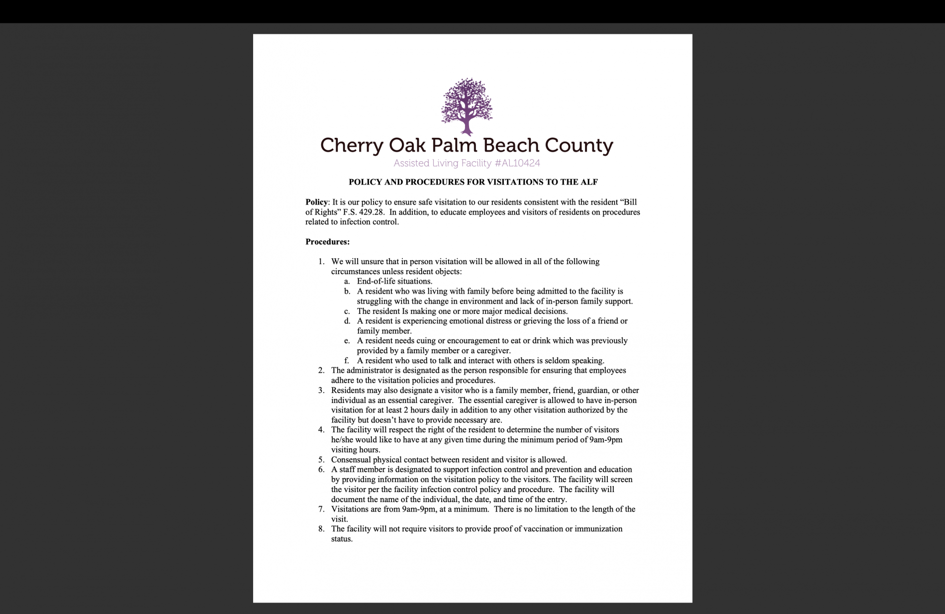 At Cherry Oak Palm Beach County, we provide our seniors with a caring and supportive community that nurtures and protects, while honoring independence and individuality.